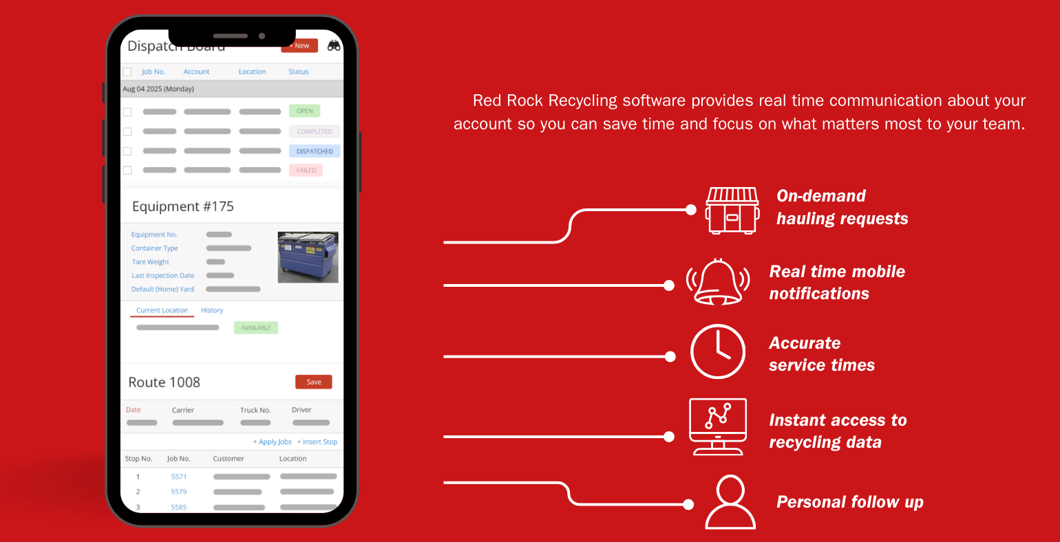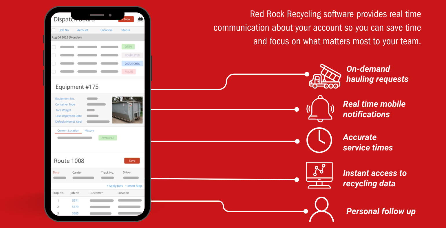 Imagine a local recycling expert who understands your challenges, cares about your success, provides a clear plan, transparent billing, real-time recycling data and a service schedule you can depend on: well that’s Red Rock Recycling.